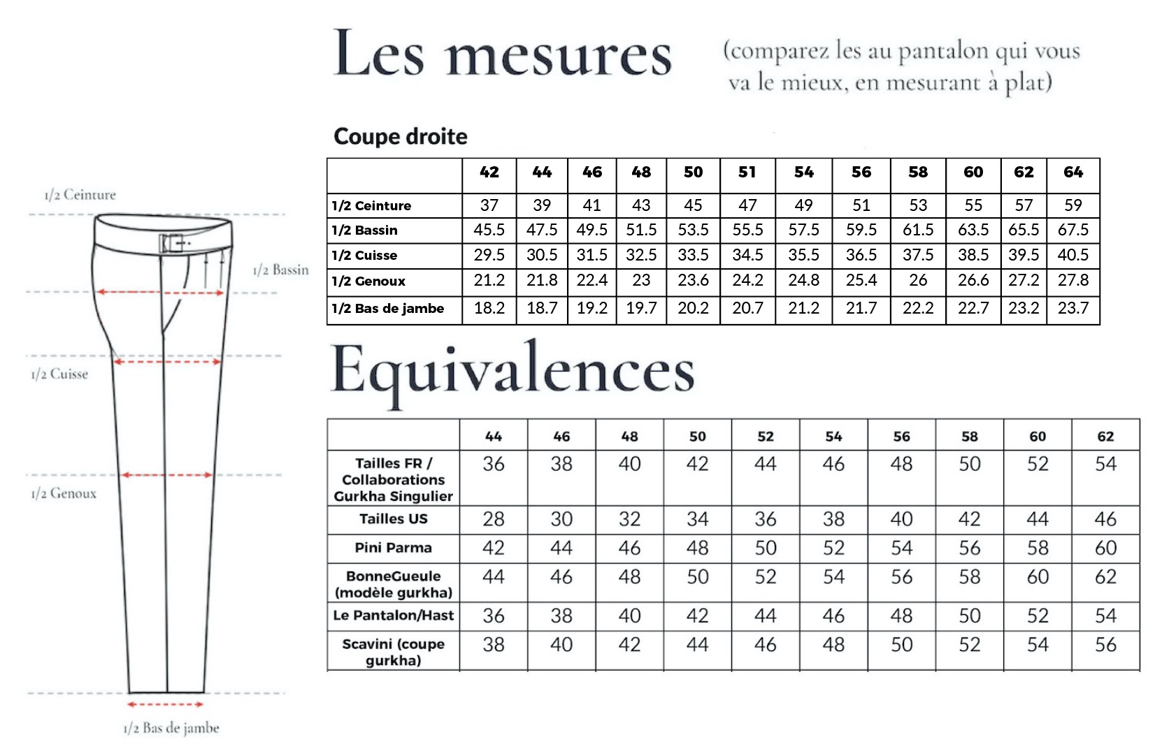 - si vous avez déjà commandé notre Gurkha en flanelle en 2021: vous pouvez simplement vous référer aux tailles FR du tableau d’équivalence, les mesures sont les mêmes)