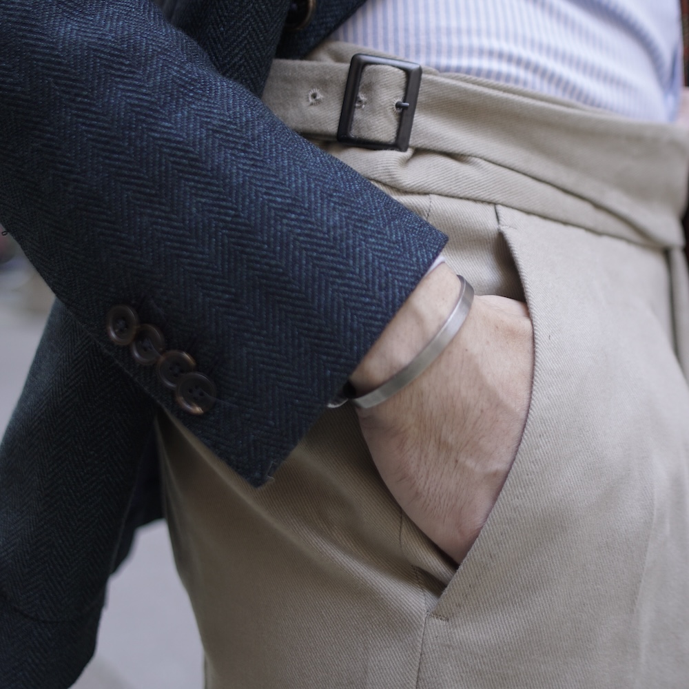 Le vrai double ceinturage des pantalons gurkas, pour une taille adaptable et un port facile aussi bien par dessus une chemise fine qu’une maille un peu épaisse.